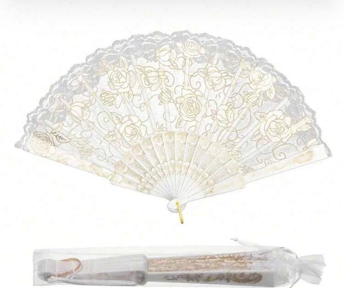 El abanico blanco con flores doradas es una pieza de elegancia y sofisticación que combina la frescura del blanco con el brillo cálido del dorado. Este abanico, delicadamente decorado con un diseño floral en tonos dorados, aporta un toque de glamour y estilo a cualquier ocasión.