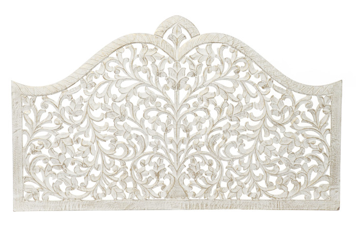 Este hermoso cabecero de madera tallado en blanco es una pieza que irradia elegancia y sofisticación. Su intrincado tallado presenta detalles artísticos que añaden un toque de distinción a tu dormitorio, convirtiéndolo en un verdadero punto focal.