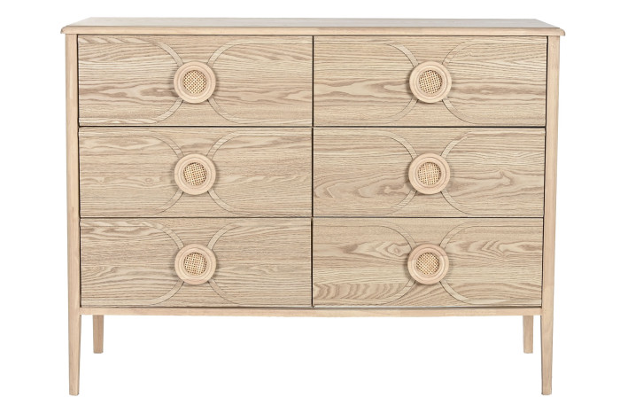 Con varios cajones espaciosos, esta cómoda ofrece un amplio almacenamiento para ropa, accesorios o cualquier otro objeto que necesites organizar. Las asas de los cajones, cuidadosamente diseñadas, añaden un toque de elegancia y facilitan su apertura.
