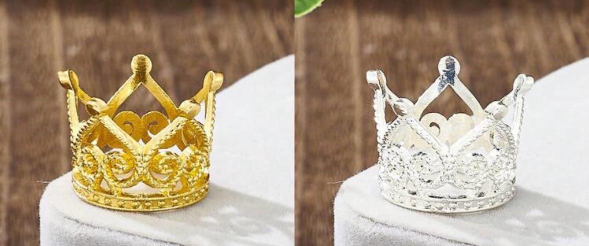 Esta corona miniatura es una pieza exquisita que evoca la majestuosidad y el detalle de la joyería real en una escala reducida. Es el accesorio perfecto para quienes buscan un toque de distinción y fantasía en su colección o decoración. Elaborada en metal de aleación fina con acabados en oro o plata, lo que le otorga un brillo auténtico y duradero , decorada con incrustaciones de cristales brillantes o pequeñas perlas sintéticas que capturan la luz desde cualquier ángulo.Con sus dimensiones reducidas, ideales para colocar sobre figuras, tartas de eventos especiales (cake toppers), para regalo o como parte de un set de fotografía.