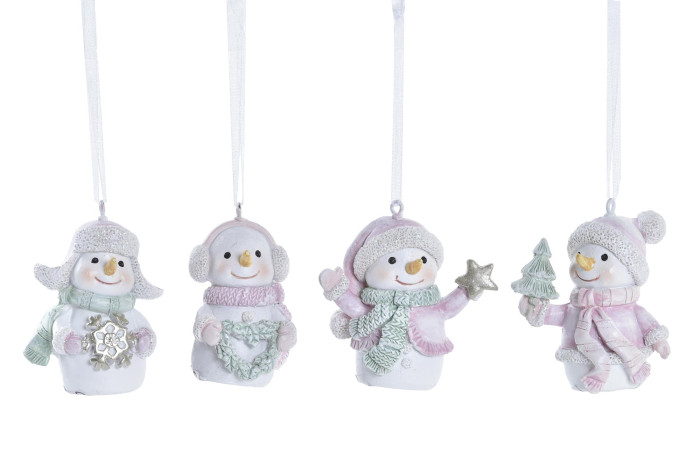 Esta encantadora decoración colgante de muñeco de nieve es un símbolo perfecto de la magia invernal. Con su cara sonriente, ojos brillantes y nariz de zanahoria , este muñeco irradia alegría y calidez . Figuras en tonos rosas y  blanco, refleja la pureza de la nieve fresca con detalles típicos navideños en sus manos . Ideal para colgar en tu árbol o en cualquier rincón de tu hogar, creando un ambiente acogedor y navideño que encantará a todos .
