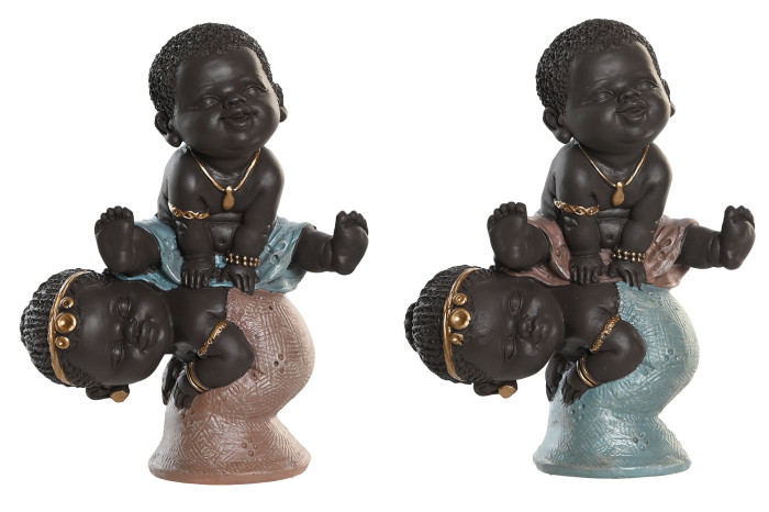 Esta encantadora figura representa a una pareja de niños africanos en un momento de alegría y diversión. Hecha de resina, la figura captura la esencia de la infancia, mostrando a los niños con sonrisas brillantes mientras juegan juntos.