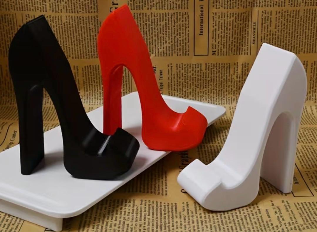 La punta del tacón actúa como base estable, mientras que el interior del zapato, a menudo acolchado con silicona antideslizante, protege tu teléfono de arañazos. Es un accesorio que no solo organiza tu escritorio o mesita de noche, sino que añade un toque de «glamour» y sofisticación a cualquier espacio, convirtiendo un simple soporte en una pieza de decoración digna de una pasarela.